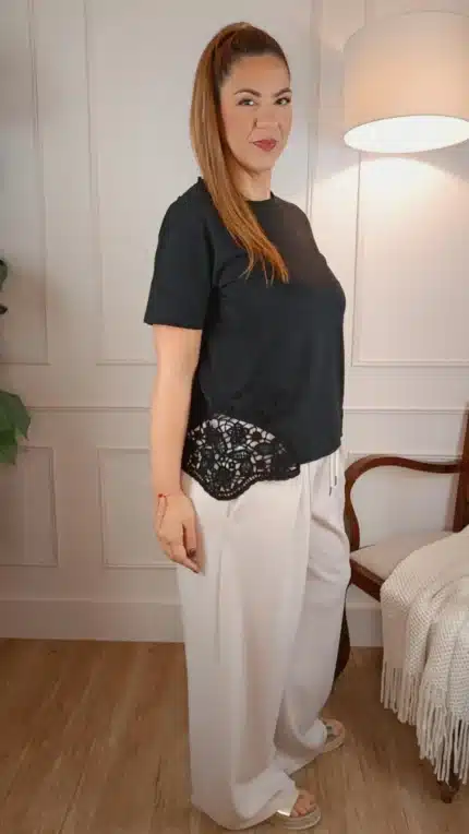 MAISON T-SHIRT ΜΕ ΣΙΡΙΤΙ ΣΤΟ ΜΑΝΙΚΙ ΜΑΥΡΟ
