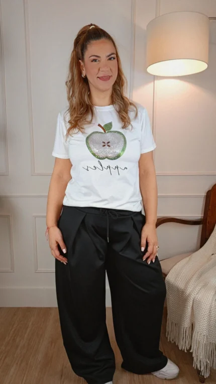 APPLE T-SHIRT ΜΕ ΣΧΕΔΙΟ ΜΗΛΟ ΜΕ ΣΤΡΑΣ ΛΕΥΚΟ