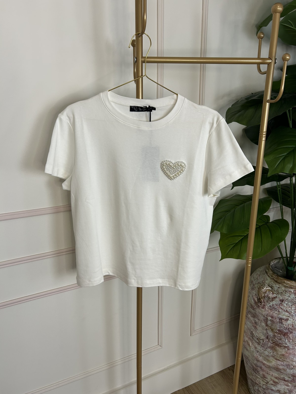 T SHIRT 100% COTTON ΜΕ ΕΛΑΣΤΙΚΟΤΗΤΑ ΜΕ ΣΧΕΔΙΟ ΚΑΡΔΙΑ ΑΠΌ ΠΕΡΛΕΣ ΛΕΥΚΟ