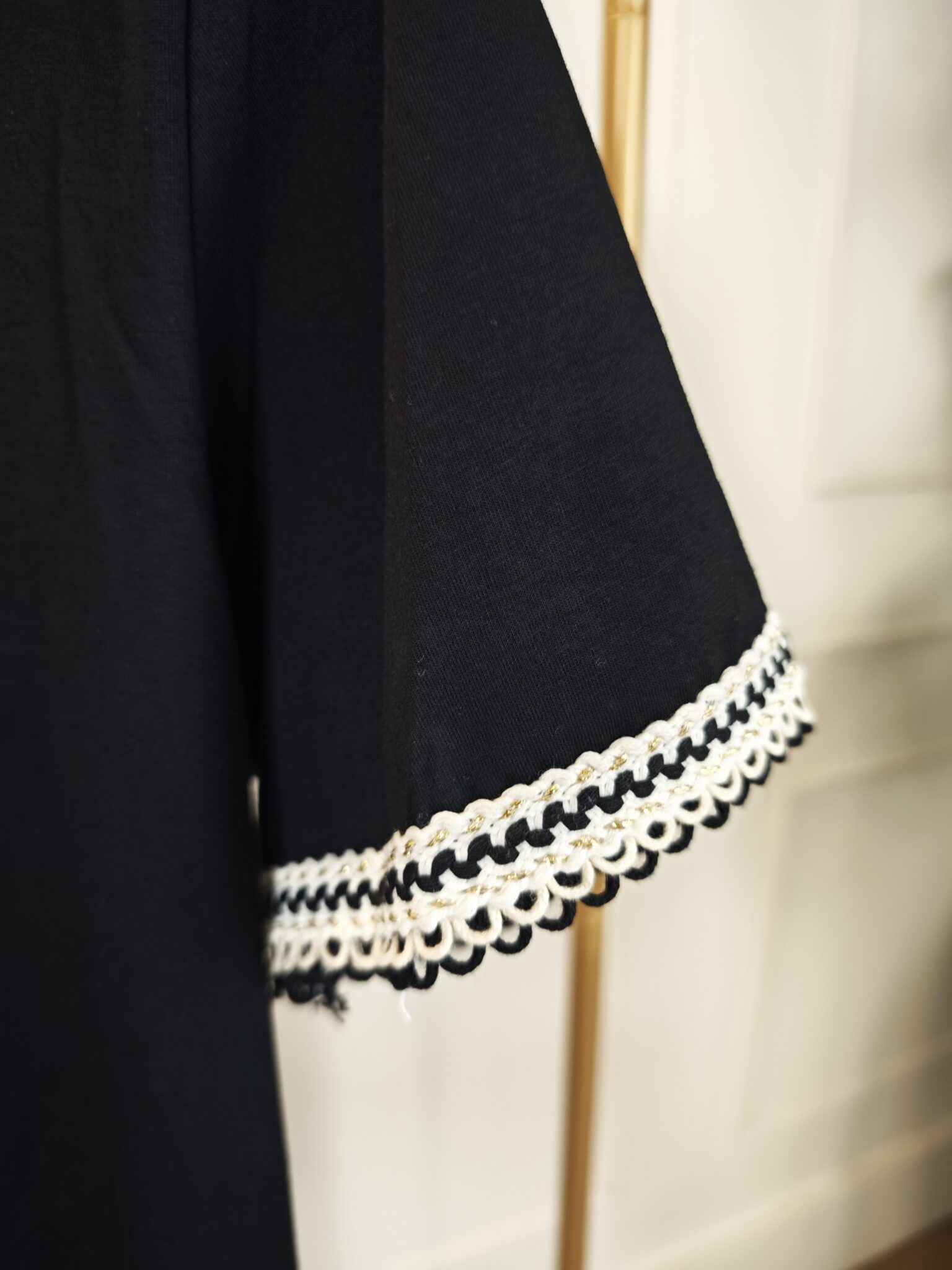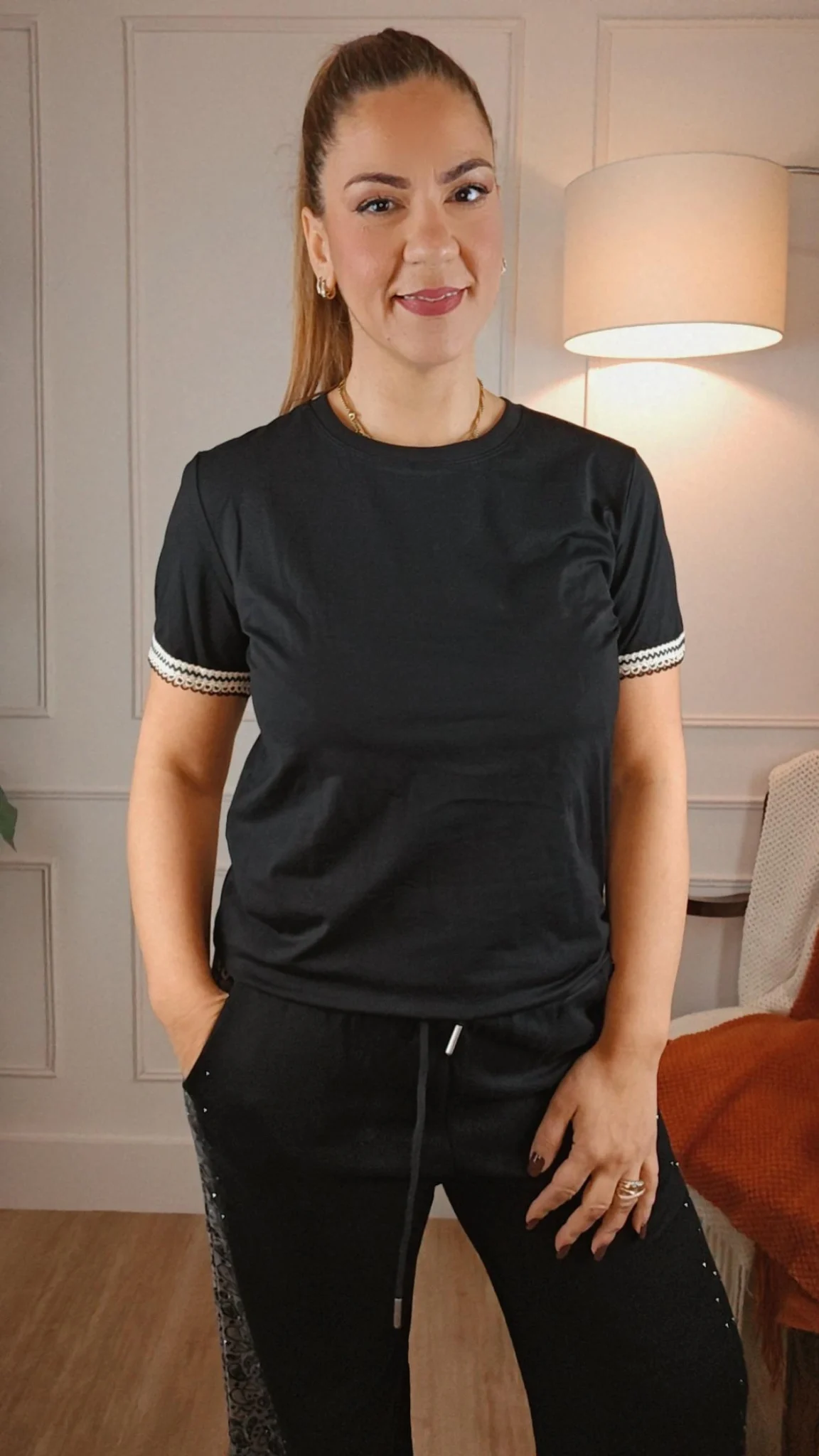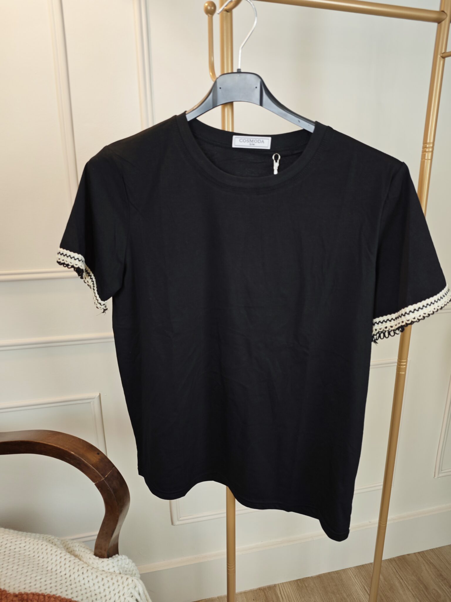 MAISON T-SHIRT ΜΕ ΣΙΡΙΤΙ ΣΤΟ ΜΑΝΙΚΙ ΜΑΥΡΟ